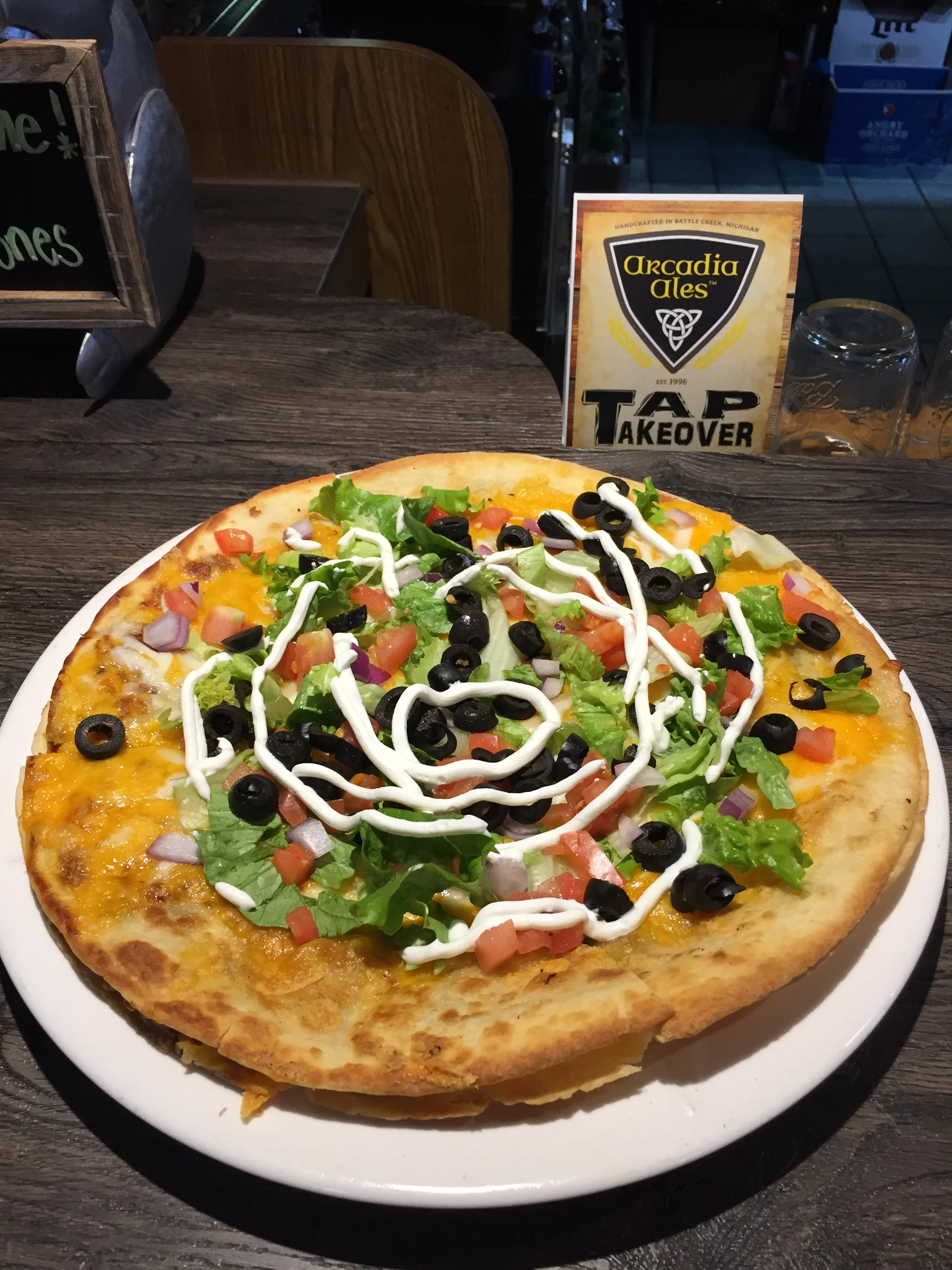 Today 11-16-16 Brisket Mexican Pizza for only 6.95. Come enjoy the mouth watering brisket with refried beans and our special slo' sauce, topped with cheddar cheese, onions, tomatoes, lettuce and sour cream.